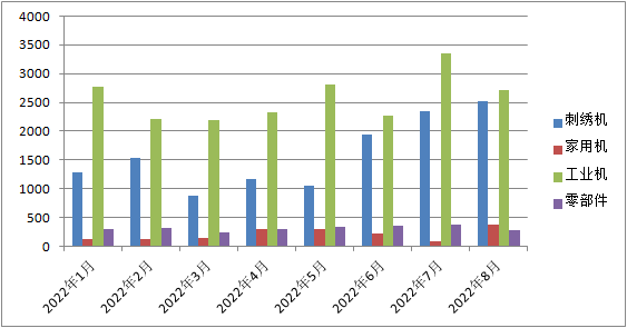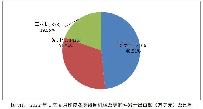 图VII 2022年1至8月印度各类缝制机械及零部件出口额(万美元)